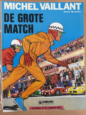 Het album 'De grote match' (Le grand défi) uit 1959 is het eerste uit de lange reeks over Michel Vaillant. Het ademt echt de sfeer uit van die periode. Heerlijke beelden uit een vervlogen periode. Naast dat het nog steeds een leuk verhaal is, worden ook de personages al direct goed neergezet. Ook van grote invloed op de serie is de ontmoeting tussen Michel Vaillant en Steve Warson en de vriendschap die de twee sluiten op het einde van het verhaal. Ook de kennismaking tussen Jean-Pierre en Agnes is van blijvende invloed. Sommigen vinden het album misschien ingehaald door de tijd, maar daar ben ik het niet mee eens. Natuurlijk zijn de personages nog enigszins naïef, maar ook dit hoort thuis in de periode waarin het verhaal speelt en is gemaakt. De wereld van 1959 zag er echt een stuk anders uit dan die van tegenwoordig.
